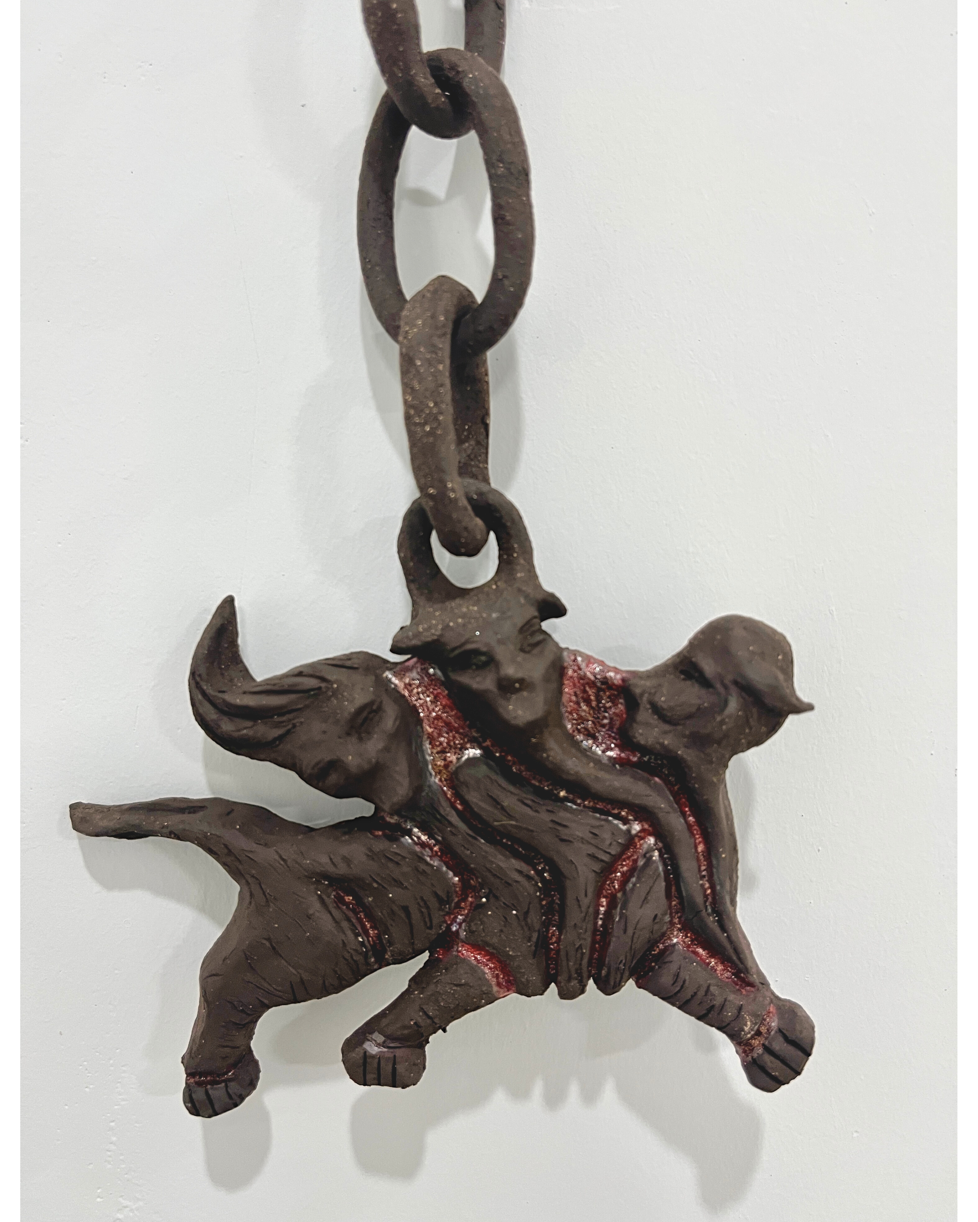 Her work investigates the relationship between abandonment, memory, and mythological landscapes as a means of understanding her identity and connection to the environment. Her pieces explore the intra-action between the natural and the urban, where forgotten objects are transformed into vessels of stories, memories, and personal mythologies. These works invite introspection and the exploration of the unknown, challenging the linearity of time and the concept of belonging. Her sculptures serve as points of containment, refuges where viewers can dwell and weave narratives that question the notion of a single reality, prompting us to reflect on the complexity of our own experiences.